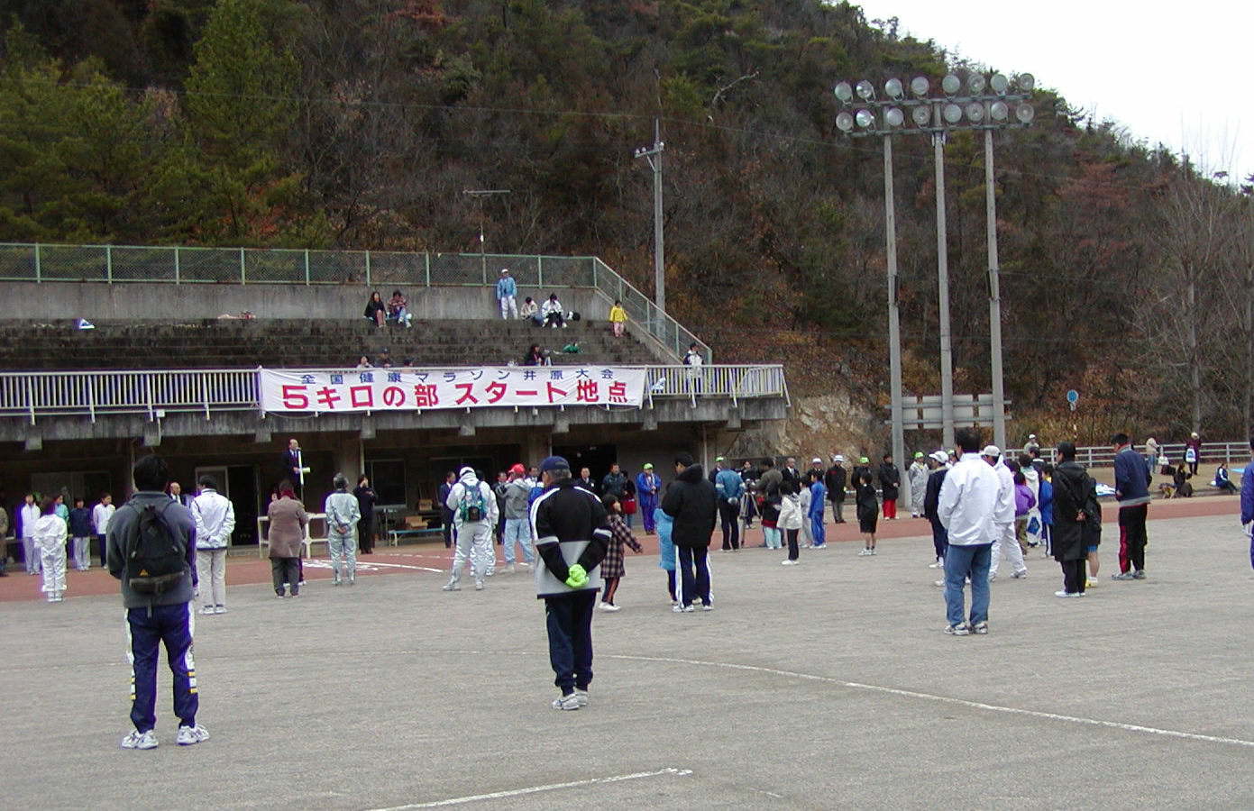 写真をみてのとおり。選手より大会関係者の人が多いくらい。 式なんかもうやめてしまったら? ところが今度の日曜日の「笠岡カブトガニ駅伝」、これの開会式は日本一長いのではないかという開会式が待っている。