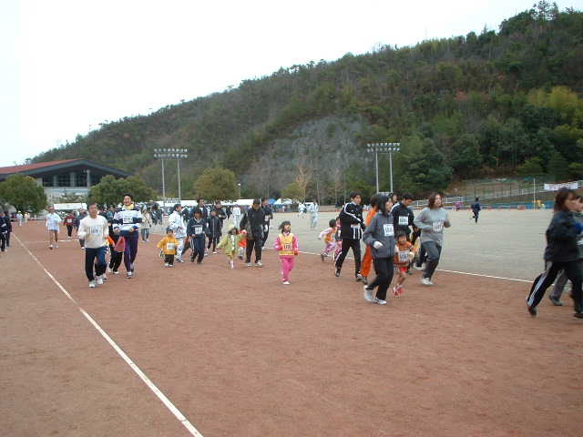 3キロは小学生の競技と親子のふれあいマラソンが合併されている。まだ2〜3才の子供連れも多く、5キロどころかハーフ選手よりも遅くゴールへ着くのではないかと思える。その早さ(遅さ)。
