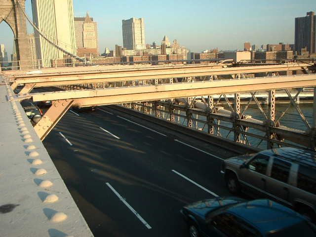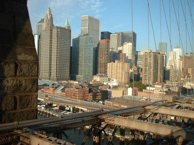 地下鉄の「ブルックリン橋・シティホール」で降り地上にでると、そこはブルックリン橋のふもとであった。