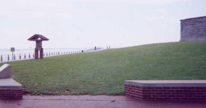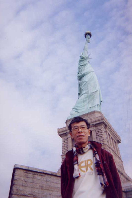 リバティ島の正面で撮ろうとアメリカ人に頼んだ。デジカメに電池マークが出たのでもう2〜3枚しか撮れないな、と思った。 その白人は二度トライして”ダメ”のジェスチャー。 「サンキュー」