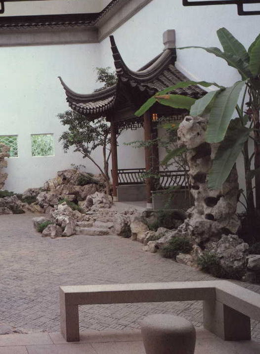 中国のコーナーには庭園がある↑、日本には水層とその音がある。