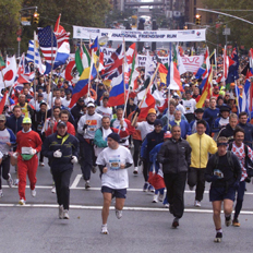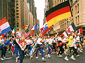 会場に入ると国旗を先頭に選手が芝生の広場を埋め尽くす。