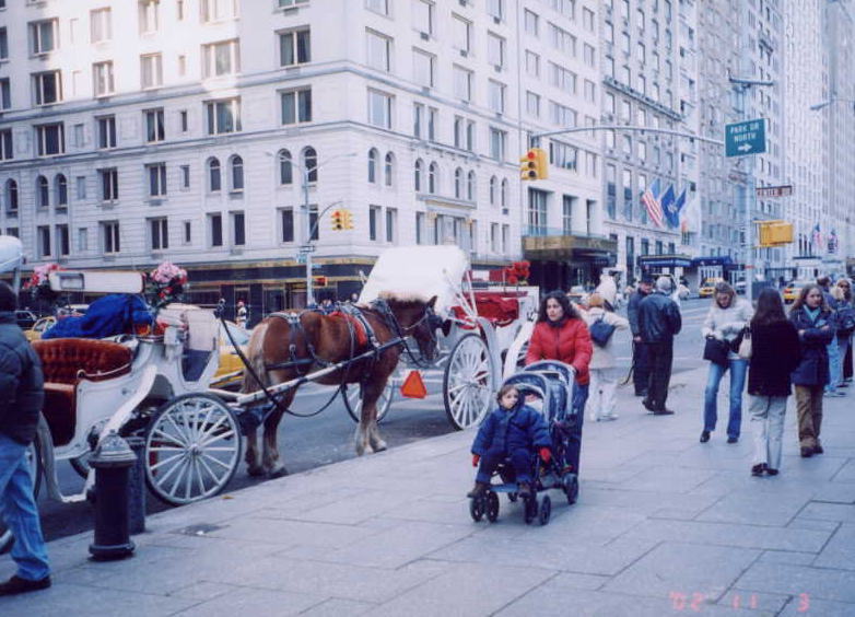 セントラルパーク前の馬車。馬車はここで乗り公園内にはいる。
