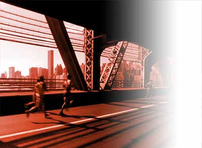 そいてやっとクイーズボロ橋にかかる。登りはじめるとハーフ地点の標識があり係員がいる。