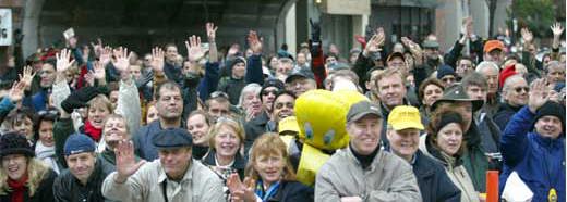 橋を渡り終わらないうち異様な声援が聞こえてきだした。