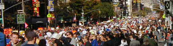 クイーンズボロ橋から降りて橋脚の影が終わると、そこは一番街だった。 高層ビル、8車線道路。その間に何十万人の応援者、その全員が張り上げる声援は。えいちゃんの胸が張り裂けてくるのがわかる。