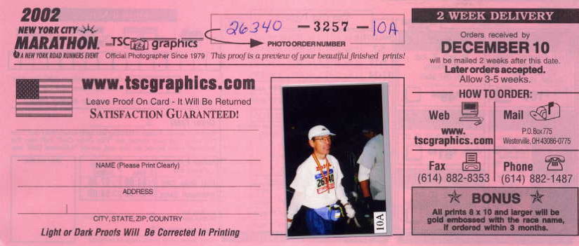 ゴールシーンの写真は希望するか?の手紙が主催者のニューヨークロードクラブから12月中旬に着る。 それは来年の2月頃、自宅に郵送される。 そういうことで来年の2月でないと、えいちゃんの勇姿はUPできない。