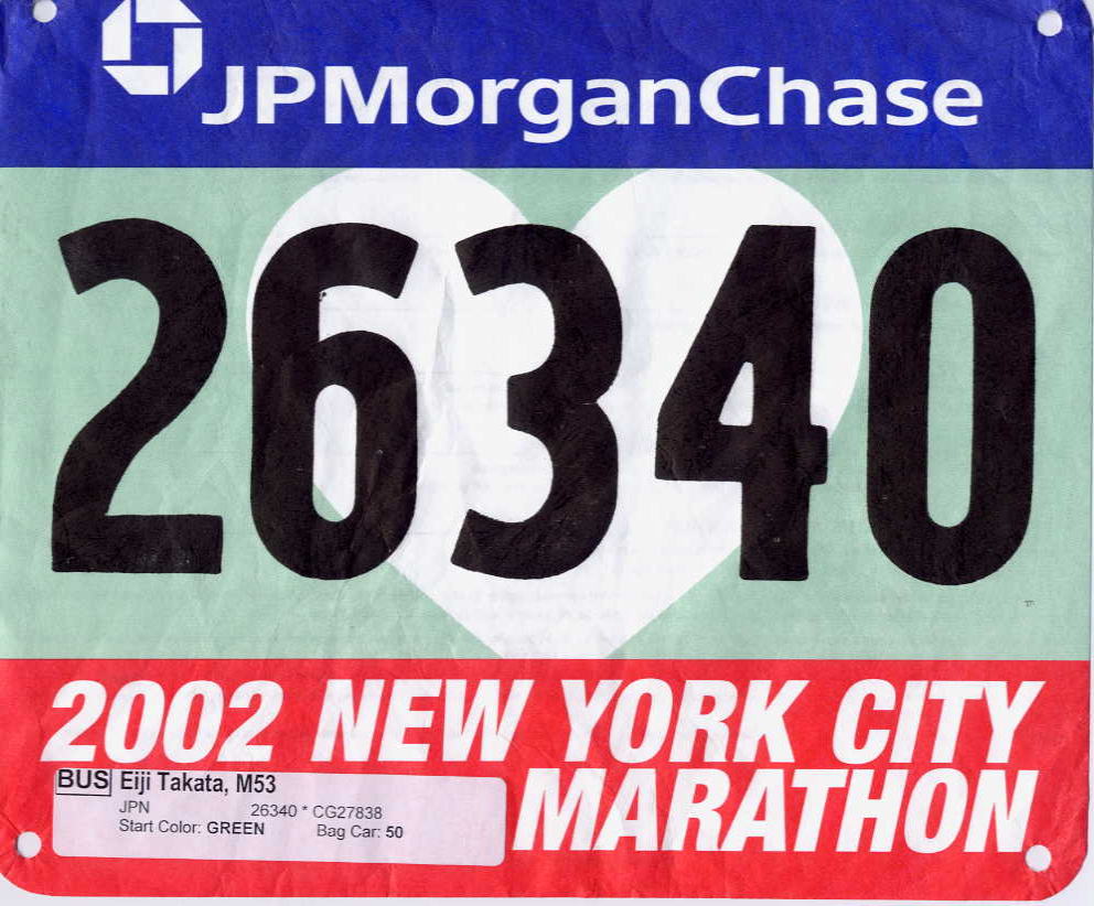 えいちゃんのゼッケン、えいちゃんはコレを胸につけニューヨーク全5区を走った。