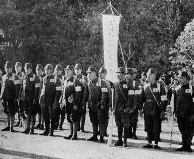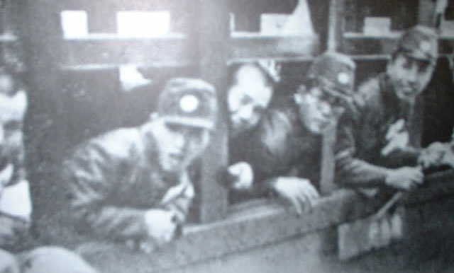 山陽線笠岡駅を出発する大島村の開拓団・昭和17年