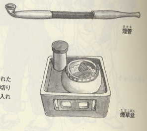 煙管の先が詰まった時は、ほじくる物をだして。そして(嬉しそうなそぶりで)詰まったもの(タバコのヤニ)を出していた。
