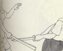 | ちゃんばら遊びは楽しい。 棒切れを持って振るだけの遊び。 皆が当時のスター、われこそが 「市川右太衛門」「あらかん」と勝手に名乗る。 先に名乗られたら仕方なしに「進藤英太郎」「山形勲」になる。 そして憎らしげに切られるふりをする。 「山形勲」になったら、必ず映画の最後の場面のように鼻をピクピクさせていた。 |