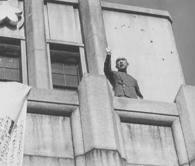 昭和45年の11月25日は僕の誕生日で・・・・その日は後輩の下宿で10時過ぎに見がさめた。 TVの画面は「三島」が市ヶ谷を占拠している。ついに・・・・ 当時三島はプレイーボーイ・パンチという週刊誌などに肉体写真と、ついでにという国家論を載せていたが、それでもちょっと読めば判るほかの作家とレベルの違う作家なので影響力は生前も多かった。が決起するとは・・・・という感じでその日はTVを見ていた。 死後は半年くらい週刊誌は三島一色というくらいであった。 |