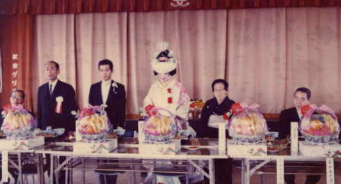 この会場は「笠岡労働福祉会館」、今ひっそりと西の浜に残っている。 当時笠岡から一番近い結婚式場といえば倉敷市中島にある「なんとか?」であった。追記・2002年6月2日 |