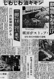 10月23日、アラブの石油供給削減 (第1次 オイルショック)は致命的なショックを与えた。 政府の石油緊急対策に基づき、道内の主要企業も 石油、電力を10%削減。百貨店・スーパーでは 開店を30分繰り下げ、石油スタンドの中には1 回に10〜20リットルまでの供給制限するとこ ろも出て、マイカー族らに大きな影響を与えた。