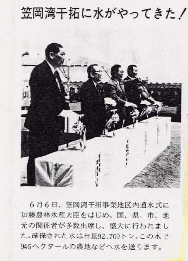 笠岡湾干拓へ水が来た日、その日は渡辺市長、長野岡山県知事はまぁ当然として農林大臣の六月さんが出席した。