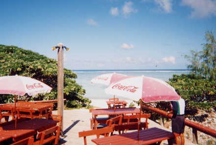 昼ご飯は『スーパーバイキング』と呼ばれるものだった。 えいちゃんにとってはビール飲みほうだい、というのが嬉しい。 南の果物が美味しく、ビール飲み物は旅行クーラーみたいなカバンに入っていて、のうなかるんではないかと心配。 が、結構缶ビール6〜7杯飲んだ。 奈良からの新婚さんたちも一緒に盛り上がった。 |