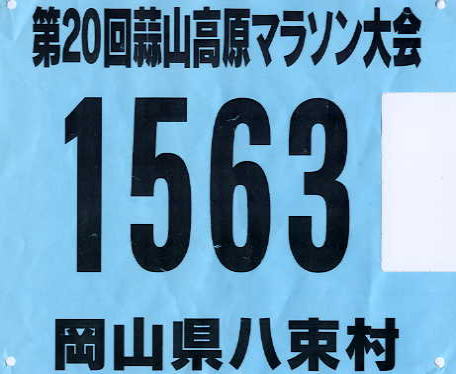 ![]() (えいちゃんのナンバーカード。右側空白のところは参加NO・氏名が記入されている、ゴール後に切り取り完走証と引き換える。) |