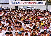 10キロの部。900人以上の選手は一斉にスタート。 けっこう迫力がある。道幅に余裕があるためそんなに混雑はしなかった。 |