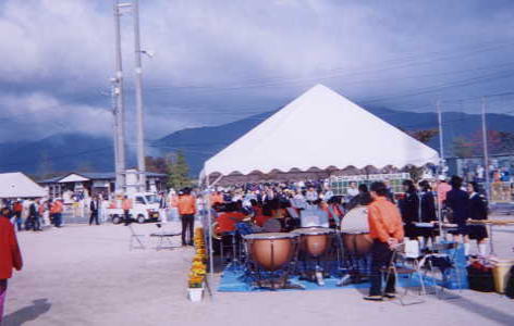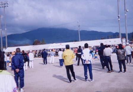 8時過ぎ会場に着く、誘導の人も手馴れ混乱は全くなし。 会場入口には赤十字の救援車大小が4〜5台。村田と二人してこの大会の規模の大きさを実感。 ますます心は高まる。 受付を済ませ開会式をのんびりと待つ。 |