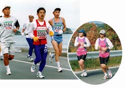 | 表 彰 | 完走者全員に完走証を渡します。 この他、楽しい特別賞を豊富に用意しています。 男子: ブルー賞(35〜49歳)、オリーブ賞(50〜65歳)、シルバー賞(66歳以上) 女子: ローズ賞(25〜39歳)、オリーブ賞(40〜55歳)、シルバー賞(56歳以上) |
