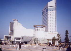 (高松駅前・ポートプラザ、完成したこのビルの他はまだ工事中)