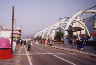 ウオーミングアップする人、写真をとる人、話す家族、そして新聞社旗を配る人。いろいろ。 緊張した感じでなく、なんか温もりのある雰囲気。