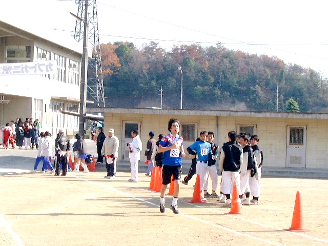 海辺の応援@岡本くんの奥さんは今か今かと待つ 海辺の応援Aサンデン橋本さんは古江の人たちと 海の向うに見える5区のランナー 待てども、まてどもゼッケン34は来ず、先に見えたのはゼッケン35 「児玉くん、この差ではもうタクシーでないと抜かれないよ」、えいちゃん海辺を一人で走る。 道通さまを過ぎるとランナーらしき姿が見えた