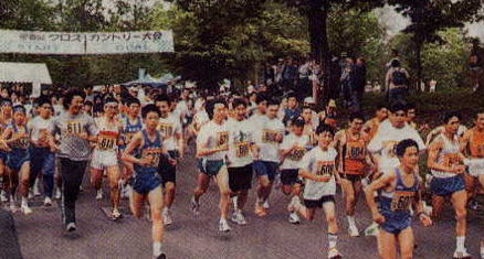 中間点までの下り坂を岡本は差をひろげながら先行。 小越はえいちゃんのすぐ後ろをピッタリ。 小越の姿をえいちゃんはまったくきずかずに走る。 岡本大差で中間点Uターン。 Uターン順位は岡本・えいちゃん・小越・藤尾。但しえいちゃんと小越は同時。 |