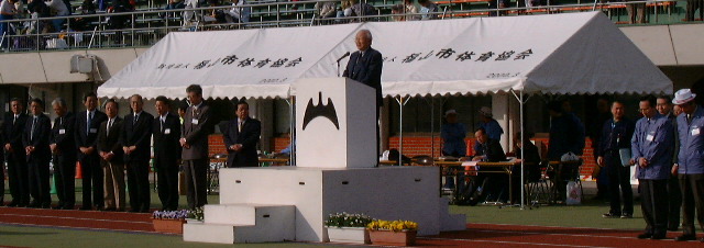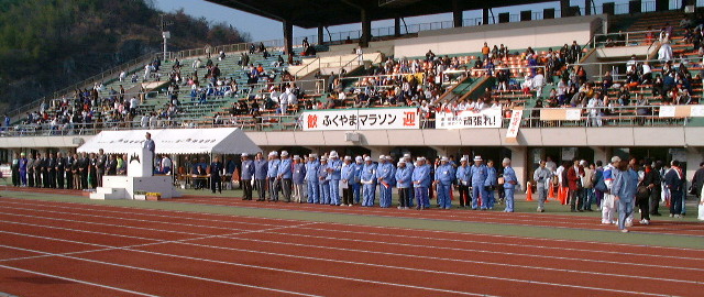 快晴のこの日、福山市竹ガ端運動公園陸上競技場にはおよそ2000人の選手のほかに応援者が集まった。