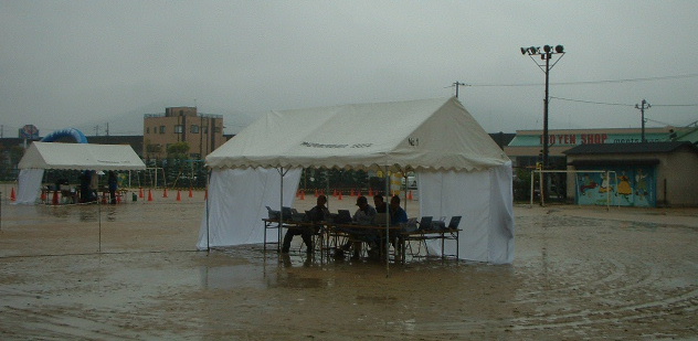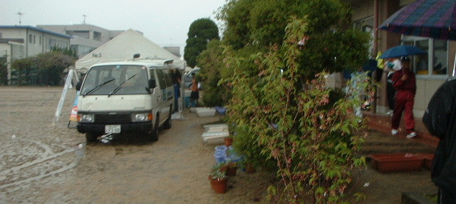 みんな屋根の下やひさしのちかくにいるから、もあるが雨で棄権した人も多いんだろうな。