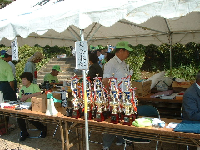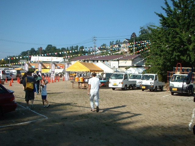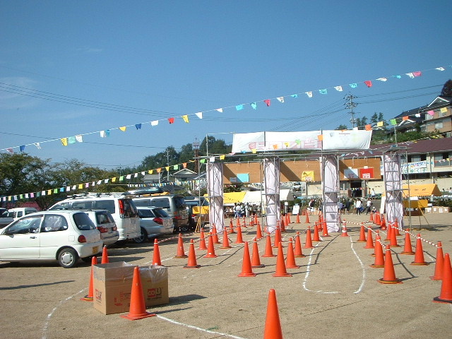 会場に近い場所に車を留めようと早めに家を出る。8時ちょうど着いた。が、誘導員の指差すまま車を走らせ止まった先は葡萄浪漫館したの、でこぼこで岩ぼこの臨時駐車場。