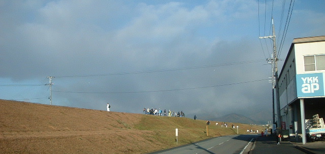 河川敷の駐車場に車を入れる人、そして車からでて会場入りする人があふれる。