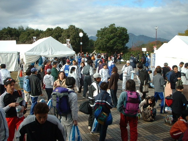 にぎわいは大会の受付場所の人の波。