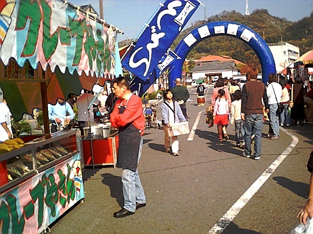 通の真ん中に店がでている。その合間を歩くのでにぎわっている演出効果がある。