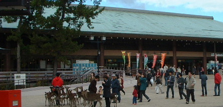 宮島に着いて船から降りると鹿が迎えてくれた。