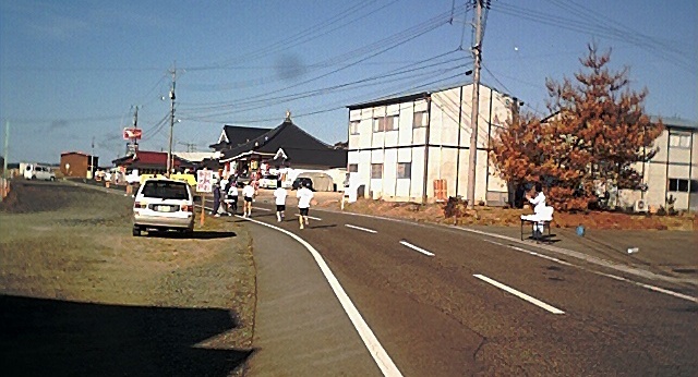 このあたりは折り返しへ行く人、帰る人で左右の道はランナーが多い。