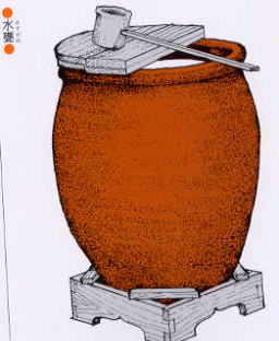 | 瓶は焼物で、口が広く、胴から底にかけて次第にすぼまった形をしています。 そのため、大量に、あるいは頻繁に出し入れするものの入れ物に向いています。 焼物ですから水が漏れることもなく、塩分や酸にも侵されないないので、いろいろな液体の保存や、味噌、酒の醸造にも使われました。 昔は味噌はそれぞれの家で作られ、一時に一年分を仕込むので、家庭にもおおきな瓶が必要でした。 自分のことや自分の物をほめることを「手前味噌」といいますが、それは自分の家の味噌がどこよりもおいしいことからきた言葉です。 (日本の生活道具百貨・河出書房より) |